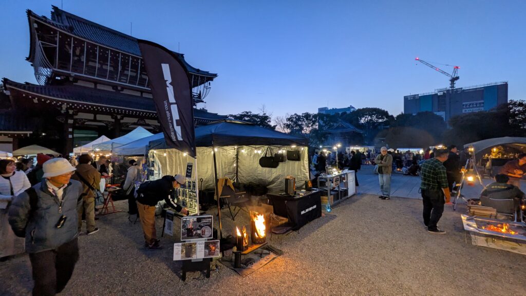 街中にある広々とした境内という非日常空間のなか、ブースでは実際に「UM Fire Pit」と「UM Fire Pit mini」に火入れを行い、燃焼効率の良さ、煙の少なさ、そして暖かさを多くの方に体感していただくことができました。